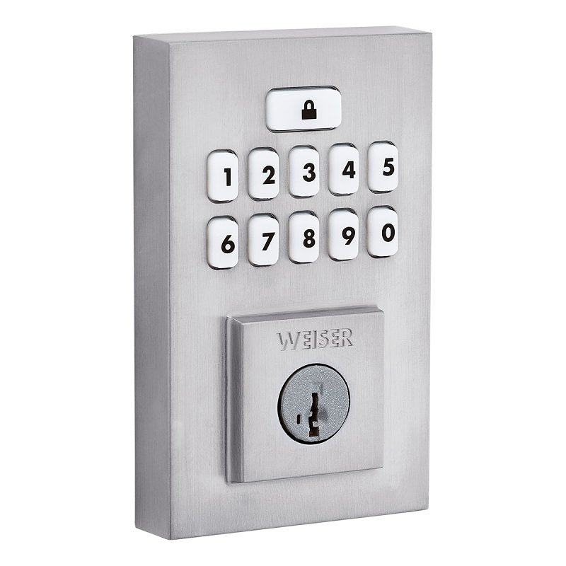 Weiser SmartCode 9GED92600-005 Deadbolt, 2 Grade, Keypad Key, Zinc, Satin Chrome, 1-3/8 to 1-3/4 in Thick Door